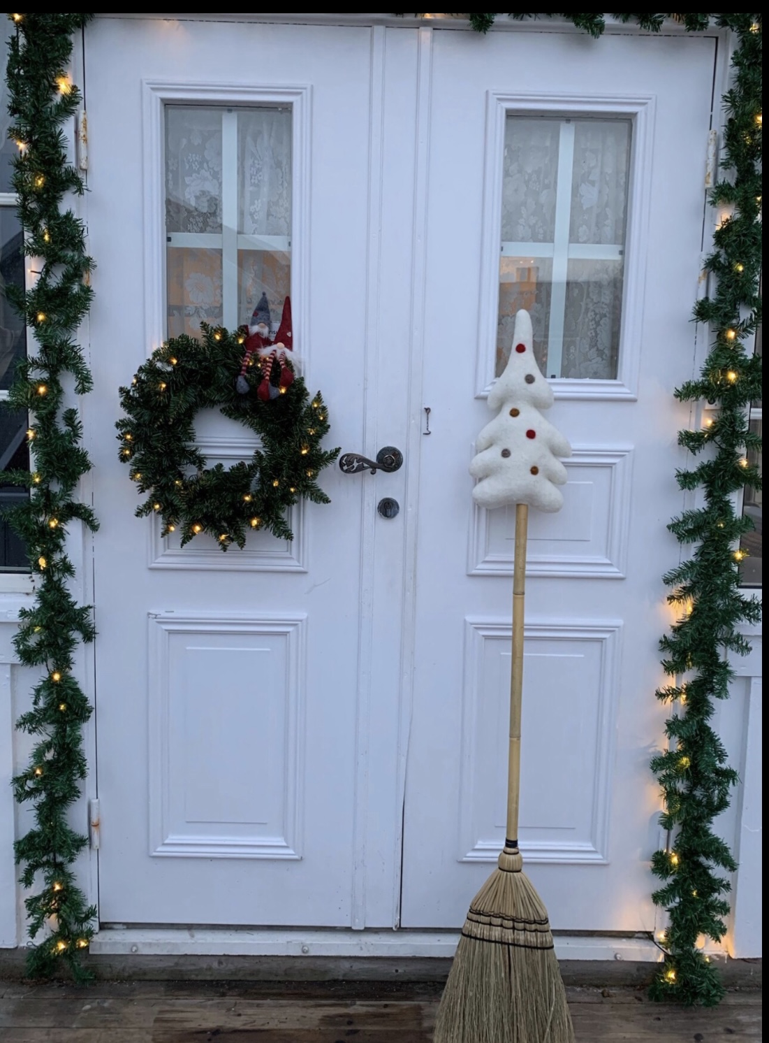 En morsom variant er å sette treet på en sopelim, pynte inngangspartiet med kranser, lyslykter, julenek osv i den koselige førjulstiden.